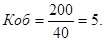 Так, если выручка от реализации составила за год 200 млн. руб., а среднегодовой остаток оборотных средств - 40 млн. руб., то коэффициент оборачиваемости оборотных средств составит: