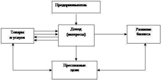 Среди наиболее важных целей предпринимателя-производство товаров и услуг, доход, престиж, развитие бизнеса. Как показано на схеме, все эти цели взаимосвязаны.