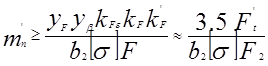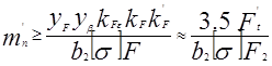 [σ] F2 =293 МПа - допускаемое напряжение при расчете на изгибную выносливость
