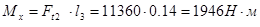 Ft =2T4 *103 /d4 =2*1980*1000/348,4=11366 H