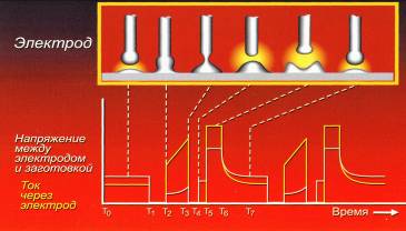 К последнему четвертому поколению относятся аппараты, способные управлять эпюрой сварочного тока, оснащенные технологией STT – перенос металла за счет сил поверхностного натяжения (см. рисунок 1). Это уникальные аппараты, позволяющие полностью стабилизировать сварочный процесс и горение дуги за счет подачи импульсов в очень короткий промежуток времени. за образец взят аппарат немецкой фирмы Lincoln – PowerWave 4555/STT.