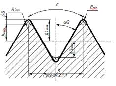 В общем случае максимальная высота головки профиля инструмента, формирующей впадину профиля резьбы детали определяется по формуле (1) (рис.2.1.1):