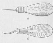 Рис. 2.4. Шилья, вставленные в ручку с винтовым патроном а — прямое; б — кривое