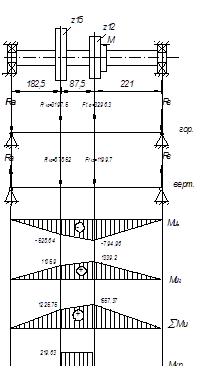 Рисунок 3.6.2.-Эпюры изгибающих и крутящих моментов.