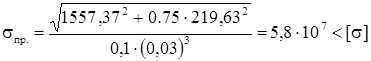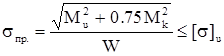 ‑ приведенное напряжение (изгиб плюс кручение) в Па;