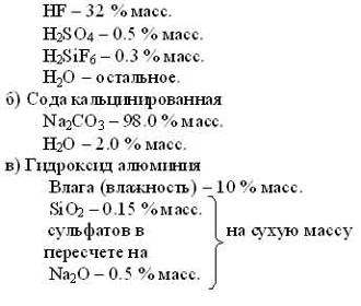С учетом избыточной кислотности на производство 1 тонны криолита необходимо: