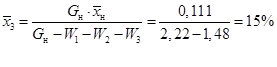 W 1 + W 2 + W 3 = W =0,45+0,49+0,54=1,76 кг/с.