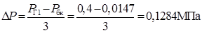 P бк = P Г3 – ∆P = 0,1432 – 0,1284 = 0,0148 МПа