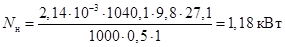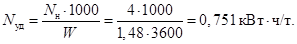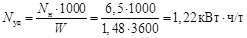 По мощности, потребляемой двигателем насоса, определяем удельный расход энергии: