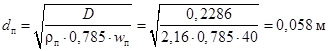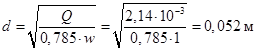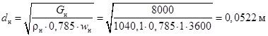 где V c – расход раствора или пара, м3 /с; w – средняя скорость потока, м/с. Диаметр штуцера для разбавленного раствора