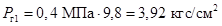 P 1 = 3,92∙0,4 = 1,568кгс/см2 ;