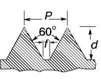 2. Шаг (P) расстояние между одноимёнными боковыми сторонами профиля, измеряется в долях метра, в долях дюйма или числом ниток на дюйм — это знаменатель обыкновенной дроби, числитель которой является дюймом. Выражается натуральным числом (например; 28, 19, 14, 11);
