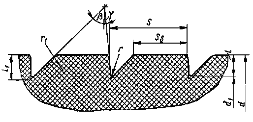 r, r1 – радиусы скругления впадин и вершин резьбы;