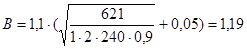 ; k=240 – коэффициент, зависящий от угла естественного откоса груза [2];