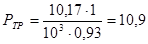 =0,9 – коэффициент, зависящий от угла наклона транспортера.