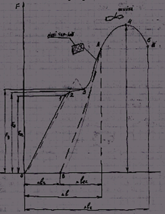 На ділянці 0-1 має місце лише пружна деформація матеріалу. На ділянці 1-2 починається відхилення від прямо пропорційної залежності. Т 2 відповідає границі пружності матеріалу і визначається за ф-лою: σe = Fe / Ao