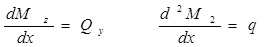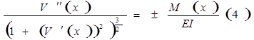 На переміщення Vx та θx при поперечному згині балок впливають згинний момент М(х)та поперечна сила Q(x). Якщо не враховувати впливу Q(x) на переміщення V(x) та θ(x) то криву балки можна записати згідно з-ну Гука для згину