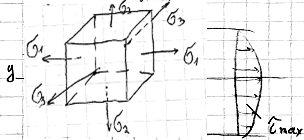Звідси випливає, що τ = 0 тобто найб норм напруга виникає в тих площинках де немає дотичної напруги, тобто в головних площинах.