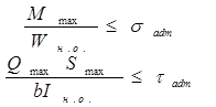 2) Повинна виконуватися умова за дотичними напругами в точках, що належать н.о. того перерізу в якому виникає найб попер сила