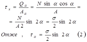 τα = τmax = σ/2 при α = 45º