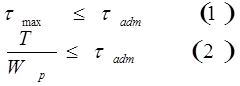 θadm – допустиме значення відносного кута закручування.