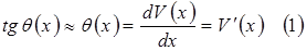 Отже кут повороту є першою похідною прогину. Ф-я Vx є р-ням пружної лінії балки – це геометричне місце центра мас попер перер.