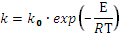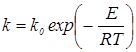 где k - константа скорости реакции; k 0 - предэкспоненциальный множитель: Е - энергия активации; R - газовая постоянная; Т - абсолютная температура.