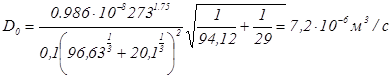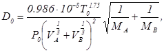 Мольный объем фенола С6 H6 OVA = 16,5 6 + 1,98 6 + 5,48 - 20 = 96,36, мольный объем воздуха VB = 20,1, молекулярная масса фенола МА = 94,12, молекулярная масса воздуха МВ = 29, давление Р0 = 0,1 МПа.