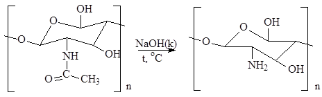 В основе получения хитозана лежит реакция отщепления от структурной единицы хитина-N-ацетил-D-глюкозамина ацетильной группировки или реакция деацетилирования.