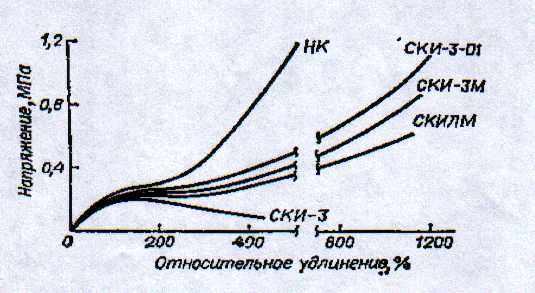 Содержание цис-1,4-звеньев составляет не менее 96%. Внешний вид СКИ-3 - однородная, монолитная, эластичная масса темного цвета. Обладающая упругими свойствами и прочность каучуки сохраняют в сравнительном широком интервале температур.