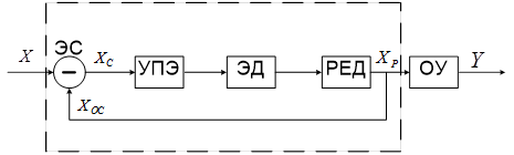 Область, обведенная пунктиром на рисунке 1 – является управляющей частью системы (регулятором);