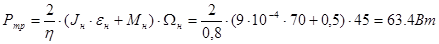 , тогда требуемая мощность электродвигателя для перемещения объекта управления рассчитаем: