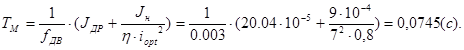 Так как двигатель маломощный, то момент инерции двигателя совместно с редуктором возьмем равным