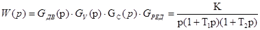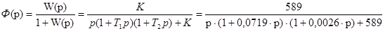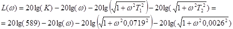Для получения необходимого среза в -60 Дб в низкочастотной зоне ставится фильтр первого порядка последовательно с активным фильтром и тахогенератором. Общая передаточная функция цепи обратной связи тогда будет иметь вид: