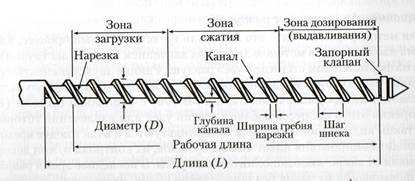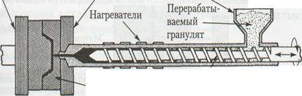 Рис. 9. В машинах, используемых для инжекционного и выдувного формования, для нагревания, плавления пластмассовых гранул и перемешивания материала используются шнеки.