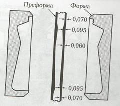 При инжекционном формовании с раздувом полости для преформ, полости для формования жестких полимеров, горловинные кольца и формовочные стержни для всех видов пластиков изготовляют из закаленной инструментальной стали.