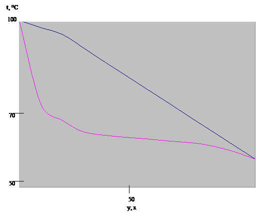 Рис.1. Диаграмма t-x,yдля смеси ацетон - вода.
