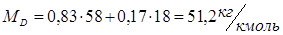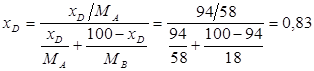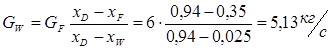 Обозначим массовый расход дистиллята GD кг/с, кубового остатка через GW кг/с, тогда