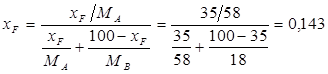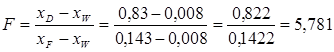 2. Содержание легколетучего компонента (в % (по массе)); в исходной смеси xF =35, в дистилляте xD =94, в кубовом остатке xW =2,5.