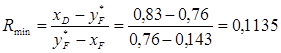 =0,76 - мольную долю ацетона в равновесном с жидкостью питания, определяем по диаграмме