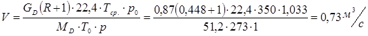 Всего: 0,0208м3 /с или 75м3 /ч.