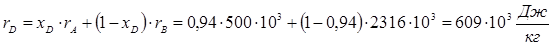 где rA и rВ - удельные теплоты парообразования ацетона и воды при 77о С .