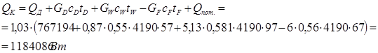 Расход теплоты, отдаваемой охлаждающей воде в дефлегматоре-конденсаторе