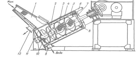 Наклонный шнековый пресс ПСЖН-68 ( рис.1) предназначен для отжима жома. Жом поступает в сепаратор, где из него частично удаляется вода, а затем в пресс, где отжимается основная часть воды.