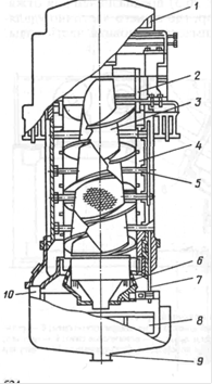 3 - шнек; 4 - разъемное сито; 5 - контрлопасть;
