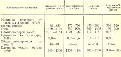 Важнейшими показателями свойств пористых заполнителей являются насыпная плотность, плотность и прочность зерен, зерновой состав, водопоглощение, деформативность, морозостойкость,. стойкость против распада, теплопроводность, Значения некоторых основных свойств распространенных пористых заполнителей приведены в табл. 1