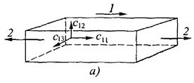 Рис. 3 Направления распространения плоских волн (1) и приложенные напряжения (2)