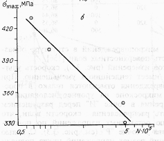 Рис. 5. Кривая усталости для исследованной стали с коэффициентом асимметрии R=0 (б) (N– количество циклов)
