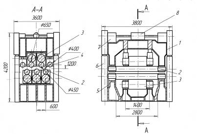 Одноклетьевой стан дуо «3500» (рис.2.1) предназначен для прокатки листов толщиной 12...120 мм, шириной 1200...3000 мм и длинной до 12000 мм из слитков массой 4,7...7,4 т. Валки диаметром 1200мм приводятся во вращение от двух электродвигателей мощностью 2680 кВт каждый через шестеренную клеть и редуктор.