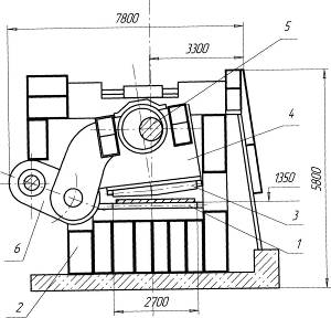 Рабочая клеть стана "2850". Подъемно-качающиеся столы (далее ПКС) имеют большую массу, что приводит к использованию мощного и сложного оборудования. Затруднена настройка ПКС. ПКС имеют явно недостаточную длину, вследствие чего получается очень большой угол наклона относительно линии прокатки, особенно при прокатке по нижнему горизонту. Значительный уклон ПКС при подаче раската в клеть по нижнему горизонту часто приводит в первых проходах к произвольному скатыванию металла к валкам и захвату его до того, как раскат установлен в необходимое положение относительно валков.